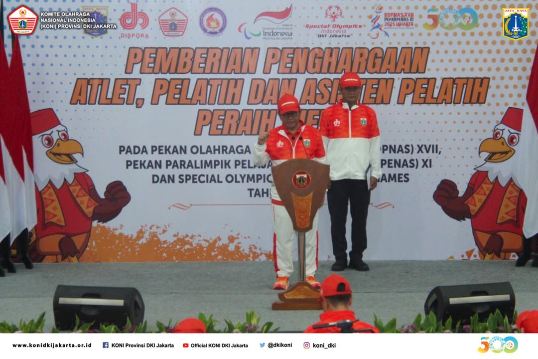 KONI DKI - Gubernur DKI Jakarta Pramono Anung memberikan penghargaan kepada atlet pelajar DKI Jakarta atas prestasi di ajang nasional dan internasional. Penyerahan...